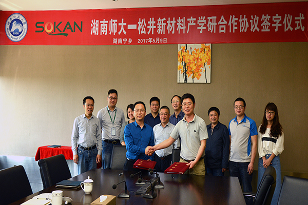 仪式上,双方正式签署了湖南师大-松井新材料产学研合作协议,同时还签署了关于共同研发高耐污耐磨涂料的技术合作项目,松井新材料为项目的运行提供30万元的资助。
