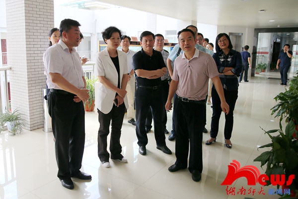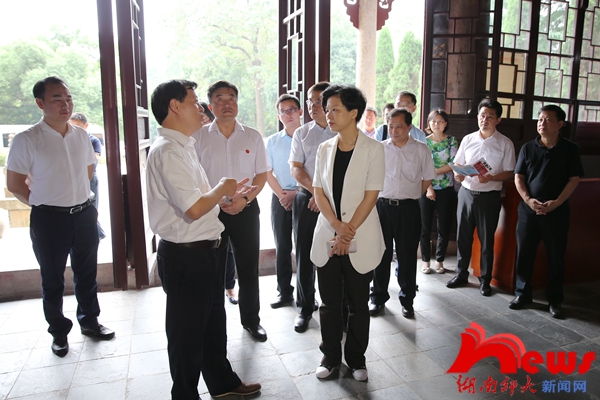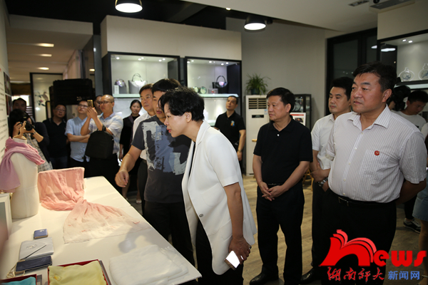 张迎春一行先后来到我校“湘绣创新研发”产学研基地、“淡水鱼类发育生物学”国家重点实验室、岳麓山抗战文化园、赫石村等房屋提质改造工程、道德文化研究院等地进行实地调研。在“湘绣创新研发”产学研基地,张迎春详细了解基地的发展历程及湘绣衍生产品的市场开发前景;在“淡水鱼类发育生物学”国家重点实验室,她考察了实验室、师生工作室,并就专业设置、科研团队、科研成果转化等情况进行了详细咨询。每到一处,张迎春都与项目主要负责人深入交流,并就科研成果转化等一系列问题责成湘江新区有关部门负责人对接。