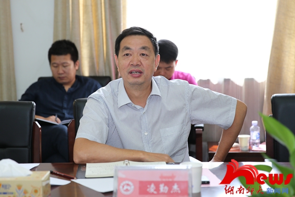 调研座谈会上,廖志坤汇报了在统筹推进岳麓山国家大学科技城建设中,我校所做的一系列重点工作,并提出在“两山一湖”园区建设、高端人才引进、科研成果落地等方面的相关诉求。
