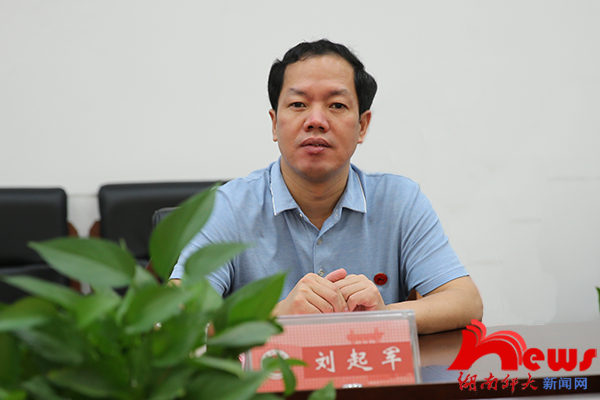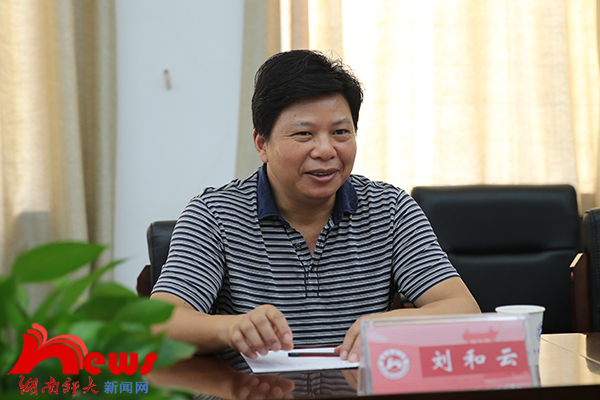 蒋洪新对刘和云一行到来表示热烈欢迎,并从办学历程、学科建设、师资队伍建设、学校特色等方面详细介绍了学校办学情况。蒋洪新指出,我校高度重视校友工作,拥有丰富的校友资源。为进一步凝聚校友力量,形成卓越的校友文化,做好迎接八十周年校庆工作,学校将组建校庆工作小组、成立学校理事会、完善校史馆布局、强化基础设施建设,还将与湘江新区开展深度合作,促进科技成果转化,美化亮化校园环境。他表示,相信在校友的关注和支持下,师大的明天一定更加美好。