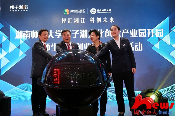 (记者 蔡颂 潘泽彦 何纯洁)11月10日上午,我校与湖南湘江新区管委会共同举办的“智汇湘江 科创未来”桃子湖文化创意产业园开园仪式暨师生优秀创业项目路演在校国际学术报告厅举行。长沙市委常委、湖南湘江新区党工委副书记、管委会主任张迎春,岳麓区区长刘汇,我校党委书记李民、校长蒋洪新及全体在家校领导出席活动,开园仪式由我校副校长廖志坤主持。