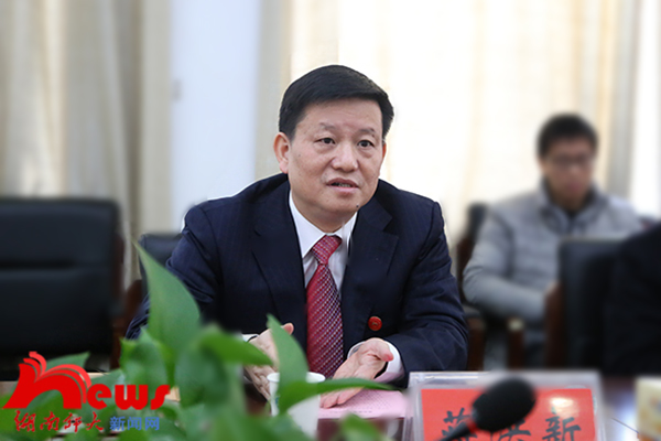 蒋洪新高度肯定了欧阳淞的学术造诣,对欧阳淞受聘回母校表示热烈欢迎和衷心感谢,并简要介绍了学校的发展近况。他表示,作为一所以人文社科见长的湖南高校,做好党史党建研究责无旁贷,他希望以此次聘任为起点,进一步加强学校党史党建学科建设。他指出,学校的发展和学科建设离不开人才的支撑,学校自创办以来就高度重视引进和培养人才。他介绍了学校正在实施的“人才战略”和取得的成效,并要求各相关单位从细处着手,全力做好服务工作,为各位专家学者创造良好的工作条件。