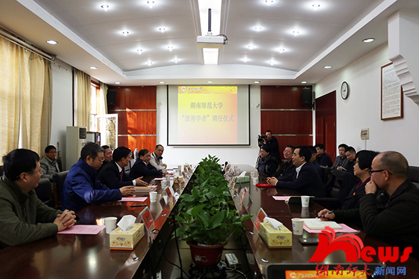 (记者 蔡颂 张永涛 唐喜)11月27日上午,学校在校办公楼二会议室举行仪式,聘任中国中共党史学会会长、中央党史研究室原主任欧阳淞为我校“潇湘学者”讲座教授。校长蒋洪新、校党委副书记刘起军、副校长周俊武出席仪式。仪式由副校长廖志坤主持。