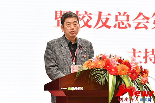 蒋洪新借用英国教育家纽曼和美国教育家克拉克?克尔的观点指出,大学是学校、师生、校友、社会、政府一起构筑的和谐发展的共同体,任何一所高校的发展,特别是在关键时期和关键事件上,都离不开校友、政府、社会的鼎力支持。他说,长期以来,校友总会发挥着“共叙同窗友情,传播师大品牌,整合校友资源,服务社会发展”的作用,得到了来自社会各界及优秀校友的关注、支持和积极响应,成为广大校友们传递母校情感的重要载体、互促共进的发展平台和联络感情的精神家园。他强调,校友是母校的名片,母校是校友永远的家。他表示,校友是学校人才培养质量的最好证明,学校将高度重视校友会工作,完善校友工作运行机制,进一步关心关注校友发展,为校友成就事业搭建更为广阔的平台。