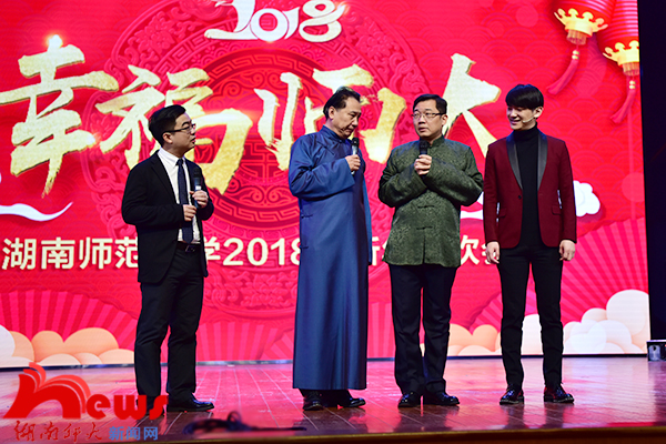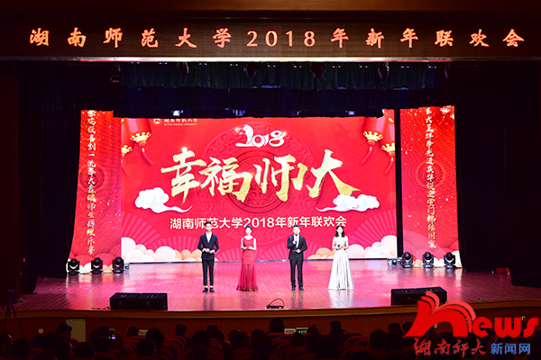(记者 李瀚 武采雯 张超群)12月27日下午,我校2018年新年联欢会在附中学生活动中心精彩上演。省政协副主席、省文联主席欧阳斌,我校生命科学学院印遇龙院士,全体在家校领导出席联欢会。联欢会开始前,校党委书记李民、校长蒋洪新通过视频代表学校向全体师生员工、海内外校友和长期关心支持学校发展的各界人士,致以节日的问候和新年的祝福。