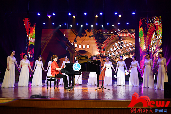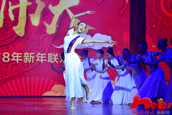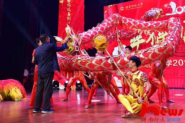 联欢会在印遇龙院士为龙狮点睛中拉开序幕。体育学院星意龙狮团的《龙狮欢腾》伴着激昂的音乐,舞龙招式多样,变化灵活,展现龙的精、气、神、韵;来自附小小朋友的戏曲舞蹈《京韵楚鼓》,将京剧和楚鼓有机结合,敲响湖湘之声,唱亮梨园之魂;一阕《潇湘竞风流》慷慨激昂,荡气回肠,悉数荆楚之才的豪气万丈,一展锦绣潇湘的深厚学养;女声独唱《小河淌水》《青春舞曲》,一曲抒情舒缓,一曲活泼激昂,为观众带来了别样的视听体验;男生群舞《离太阳最近的人》以形表情,朝气蓬勃,展现了藏族人民的勤劳质朴和热情奔放;女声小组唱《土耳其进行曲》,旋律活泼,唱腔优美,两者交织相融;校友大兵带来的群口相声《迟到》以“现身说法”式的表演,使观众在笑声中回味作品的讽刺意义;附中舞蹈团带来的《十八岁的天空》舞姿灵动,似飞燕,如泓歌,尽显青春的活力与潇洒;音乐学院声乐系青年教师石倚洁带来的男声独唱《重归苏莲托》《乡音乡情》,淳朴旋律尽显风情,嘹亮歌声绕梁不去;我校潇湘爱乐交响乐团的《饮酒歌》,再现歌剧《茶花女》中经典的主题旋律,富于色彩和感情。